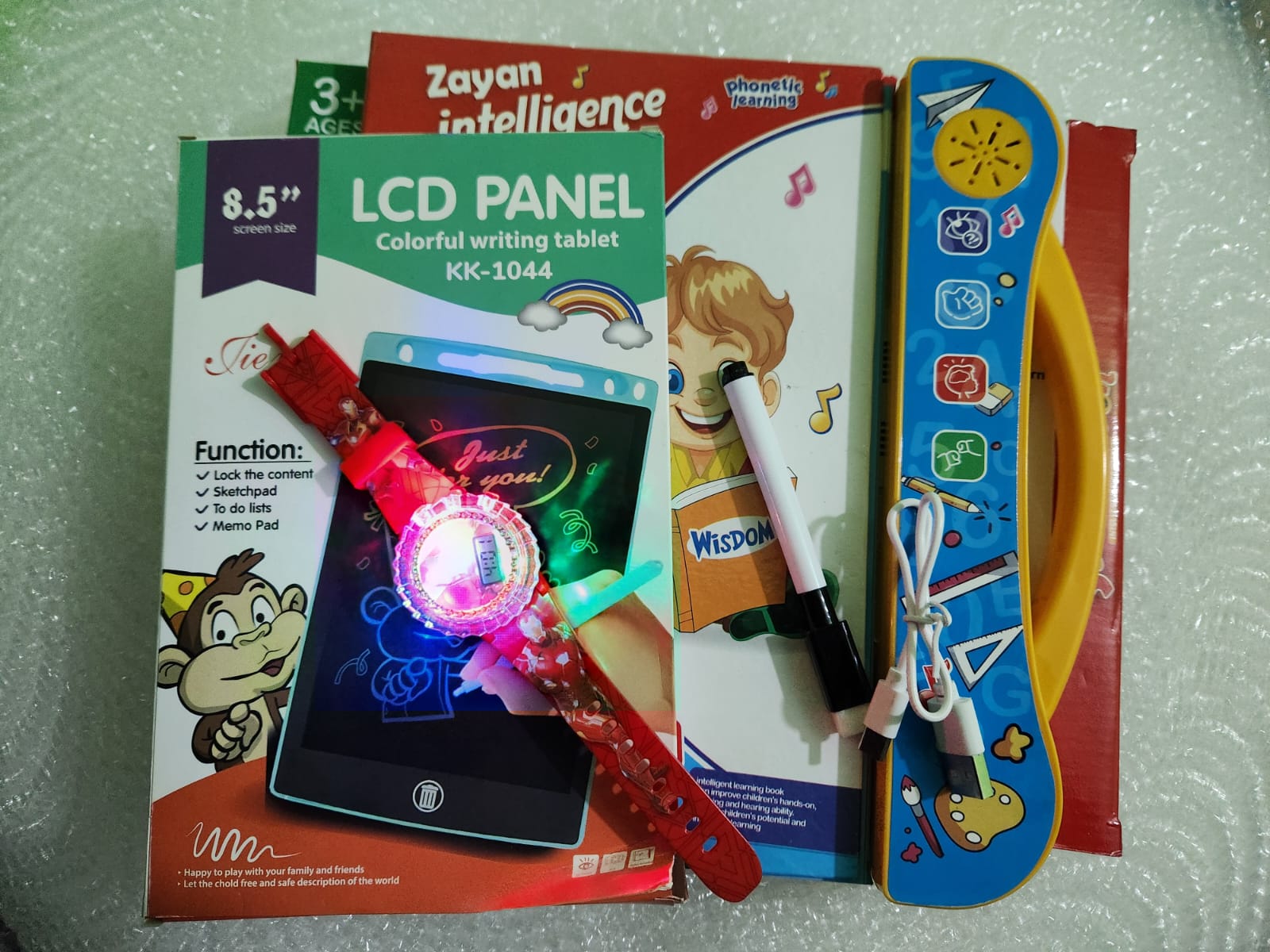 2️⃣ LCD Writing Tab 8.5" (Multicolor) – লেখালেখি, আঁকা ও নোট নেওয়ার জন্য উপযুক্ত; এক ক্লিকে স্ক্রিন মুছে ফেলা যায়।